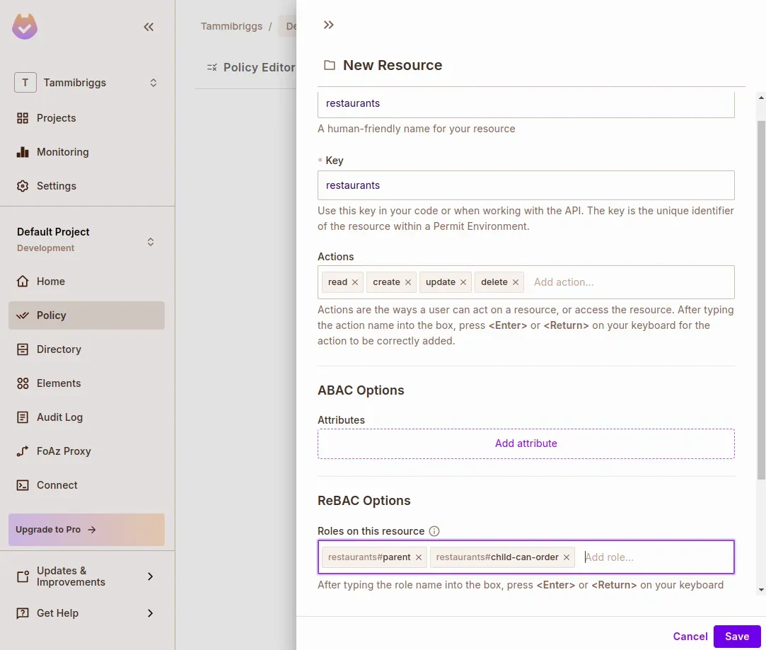 - In your Permit.io Dashboard, go to Policy > Resources