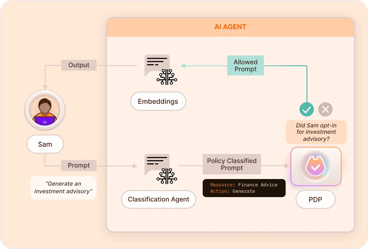 Traditional access control models fall short when building AI-driven applications, especially when users interact via natural language. Prompt filtering bridges the gap between unstructured user input and structured policy enforcement by classifying requests before they’re processed.